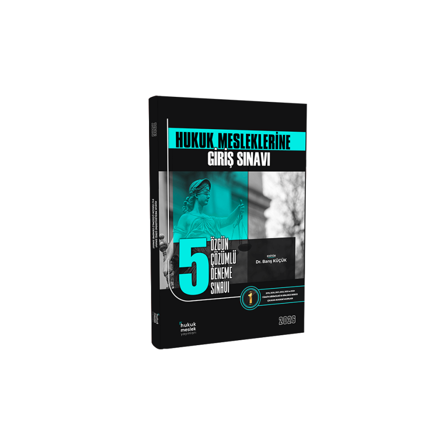 24 Ekim 2019 yılında yürürlüğe giren ve 2024 yılı itibariyle Hukuk Mesleklerine Giriş Sınavı, ilgili kanunlarda belirtilen şartlara ilave olarak hâkim/savcı yardımcılığı sınavına girmek ve avukatlık veya noterlik stajına başlamak için, başarı şartı gerektiren bir sınavdır. Hukuk Mesleklerine Giriş Sınavı 5’li deneme seti 15 Ocak 2025’te değişen soru sayısı ve yeni eklenen derslerle birlikte son yapılan mevzuat değişiklikleri, son yıllar ÖSYM sınavları göz önünde bulundurularak sınava en yakın formatta ve sınav test sıralamasına göre en özgün şekilde yazar eğitmen kadromuz tarafından hazırlanmıştır. İncelediğiniz deneme sınav seti 5 adet deneme ve çözüm kitapçığından oluşmaktadır. Setin içerisinde yer alan çözüm kitapçığında ise her soru için açıklayıcı çözümler yer almaktadır.