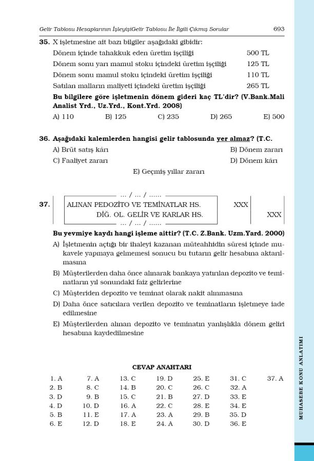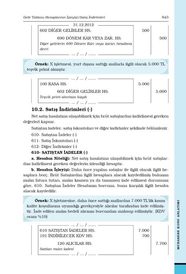 10. GELİR TABLOSU HESAPLARININ İŞLEYİŞİ